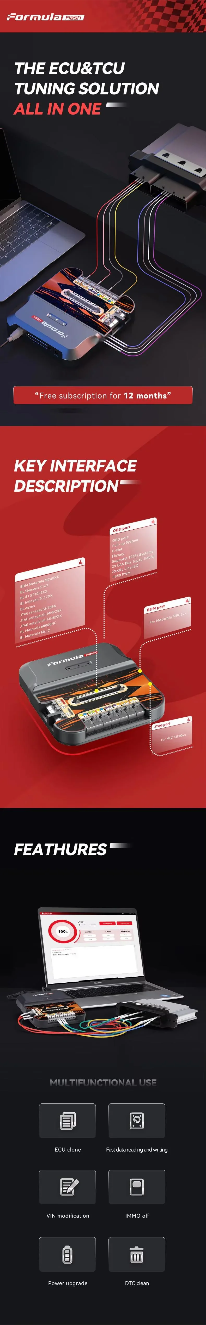 FormulaFLash is an all-in-one ECU and TCU tuning solution. It offers free subscription for 12 months. After the software subscription expires, the software will stop updating, but existing functions will continue to be available.