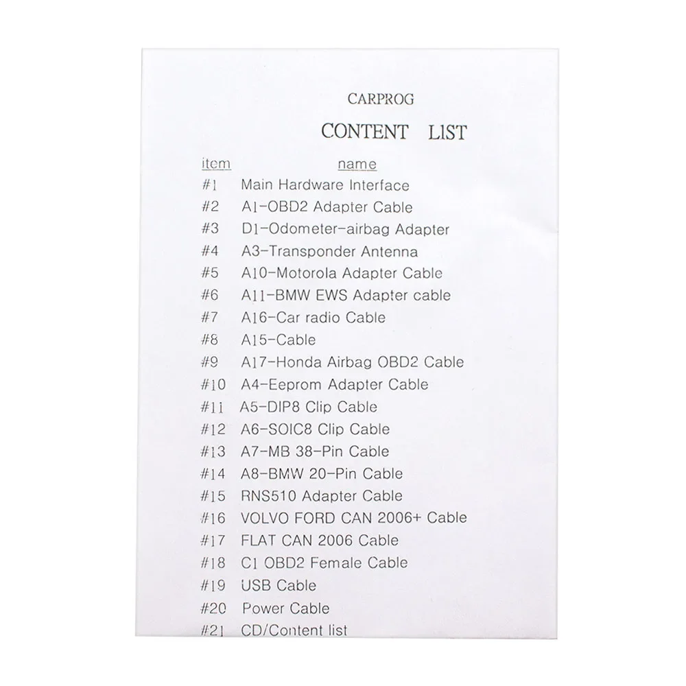 Carprog FW V13.77 Full Set Packing List: